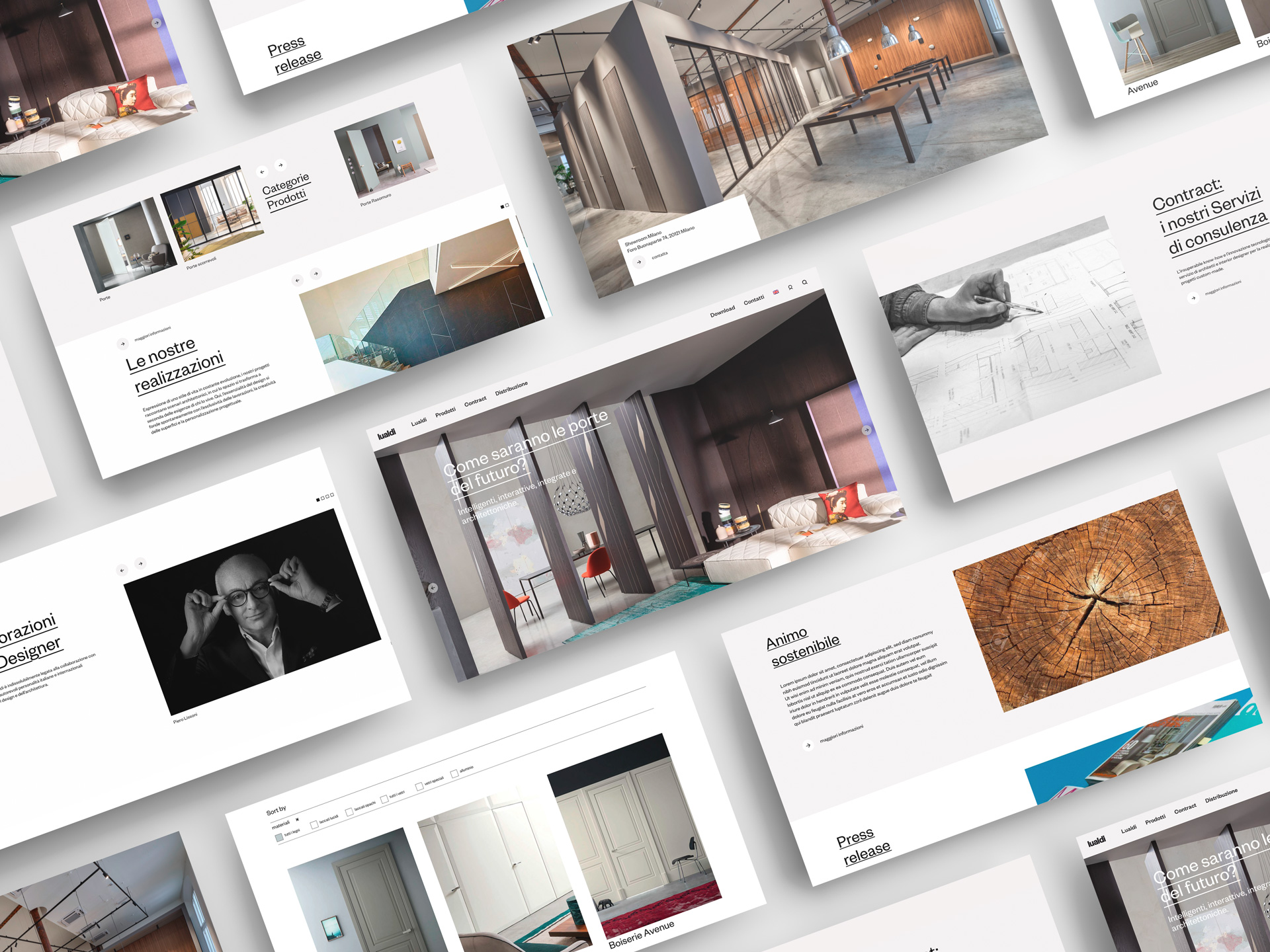 Lualdi is the reference name of Italian design in the world, for the development of doors, systems and custom-made furniture for interiors for residential, commercial and hotel use. Starting from the historic partnership with the architect Luigi Caccia Dominioni, in the 1960s, the company has undertaken a work of constant experimentation and research on materials and finishes intended to configure the spaces of everyday life. This astonishing creative and technological experimentation has led Lualdi, over the years, to collaborate with the most influential contemporary architects, from Philippe Starck to Piero Lissoni.