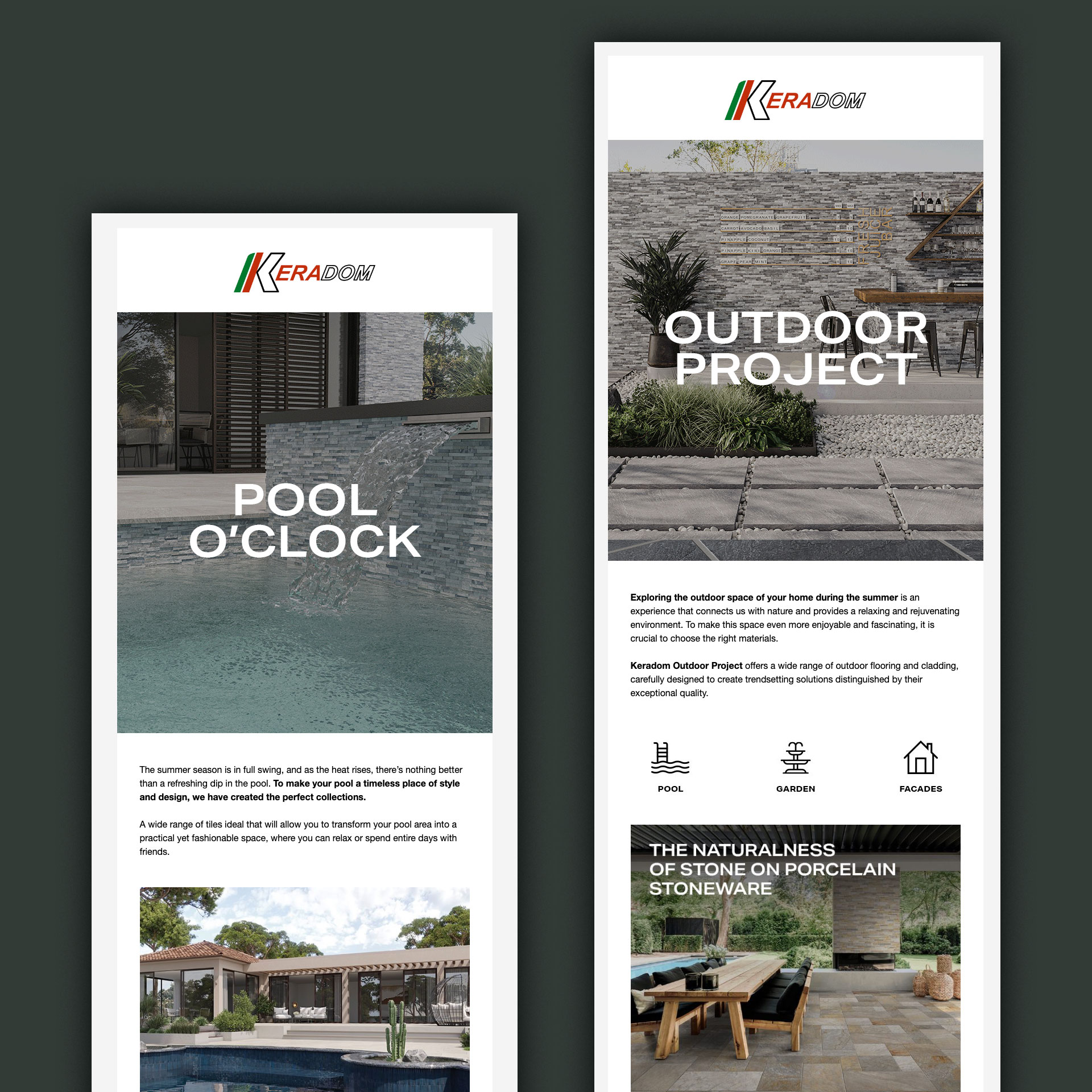 Ogni mese viene caratterizzato da una categoria di prodotti da approfondire sui diversi touchpoint dell’Azienda attraverso una newsletter dedicata, una newsletter incentrata su un progetto dove gli stakeholder di Keradom possano vedere la categoria di prodotto del mese applicata su un caso reale, un approfondimento sul sito del Cliente della categoria cui si vuole dare risalto mediante una landing page realizzata ad hoc e, infine, mediante un corposo incremento dei post sui social media dell’Azienda per realizzare un focus, uno spazio dedicato, ai prodotti del mese.