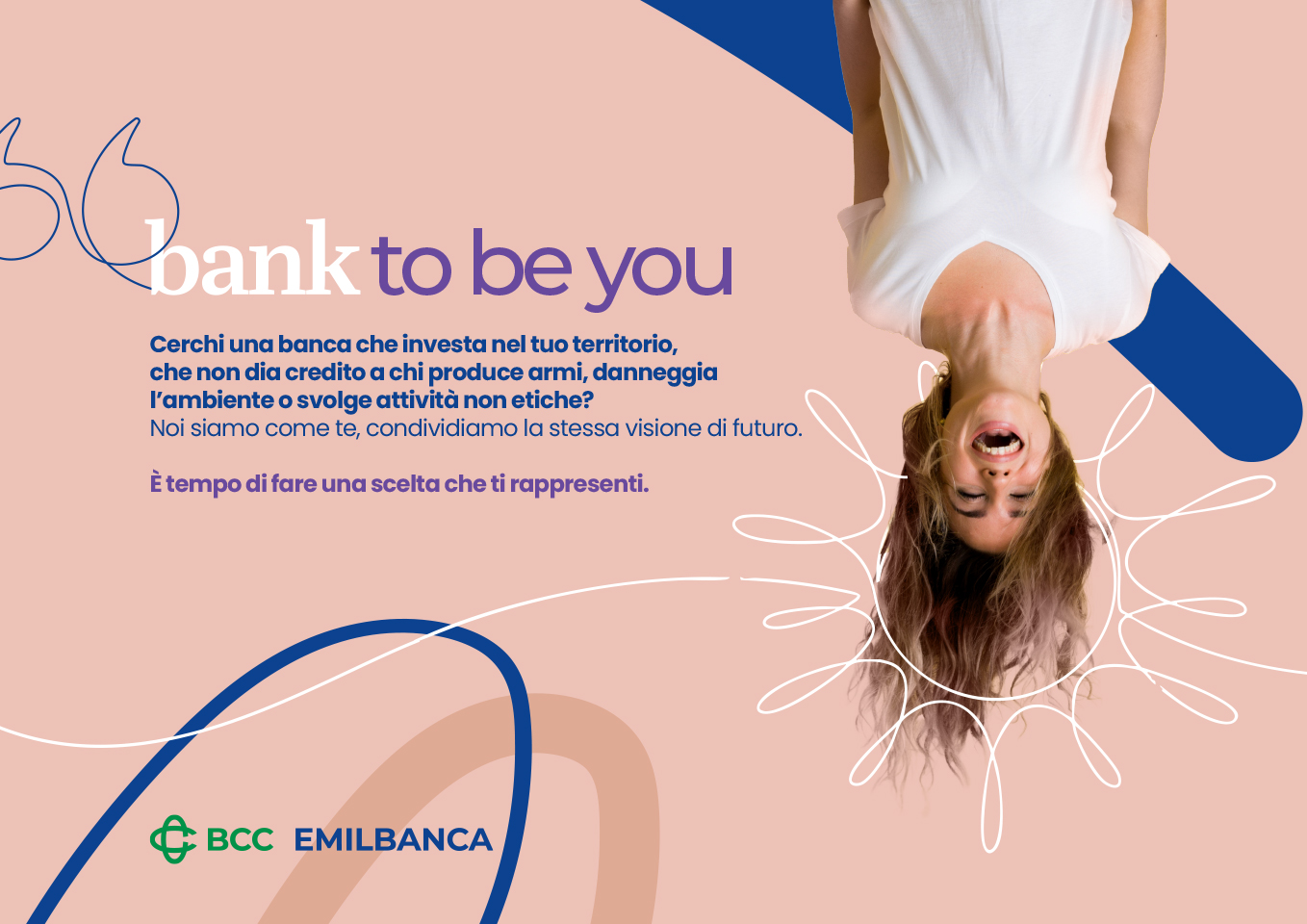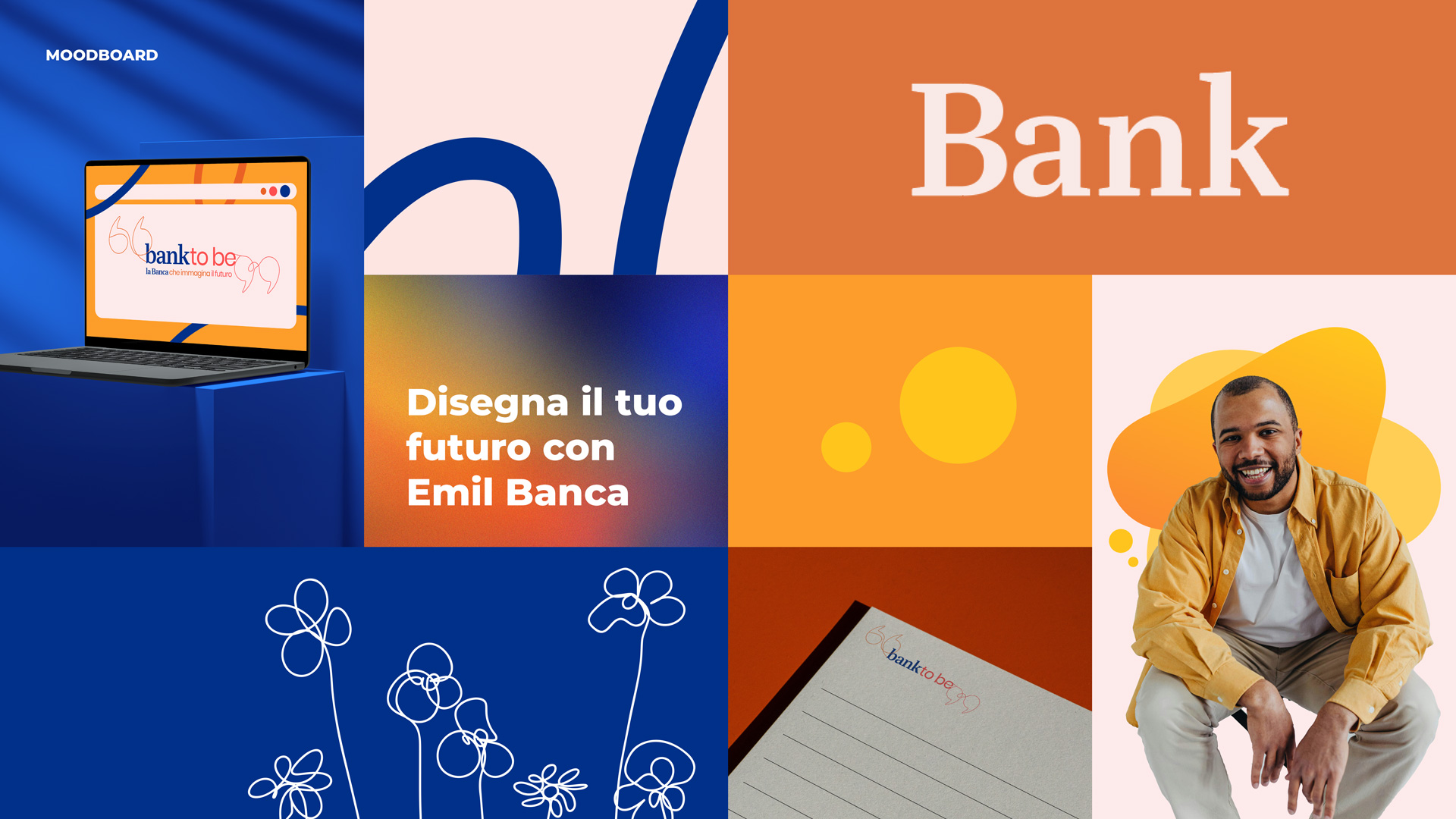 Emil Banca è una Bank To Be. Una banca che già oggi si coniuga al futuro. Una banca che è e sarà. Con il concept Bank To Be, Emil Banca si presenta al pubblico di giovani clienti e prospect proponendo sé stessa in proiezione, spostando il punto di vista in avanti, dimostrandosi attenta al mondo che verrà.