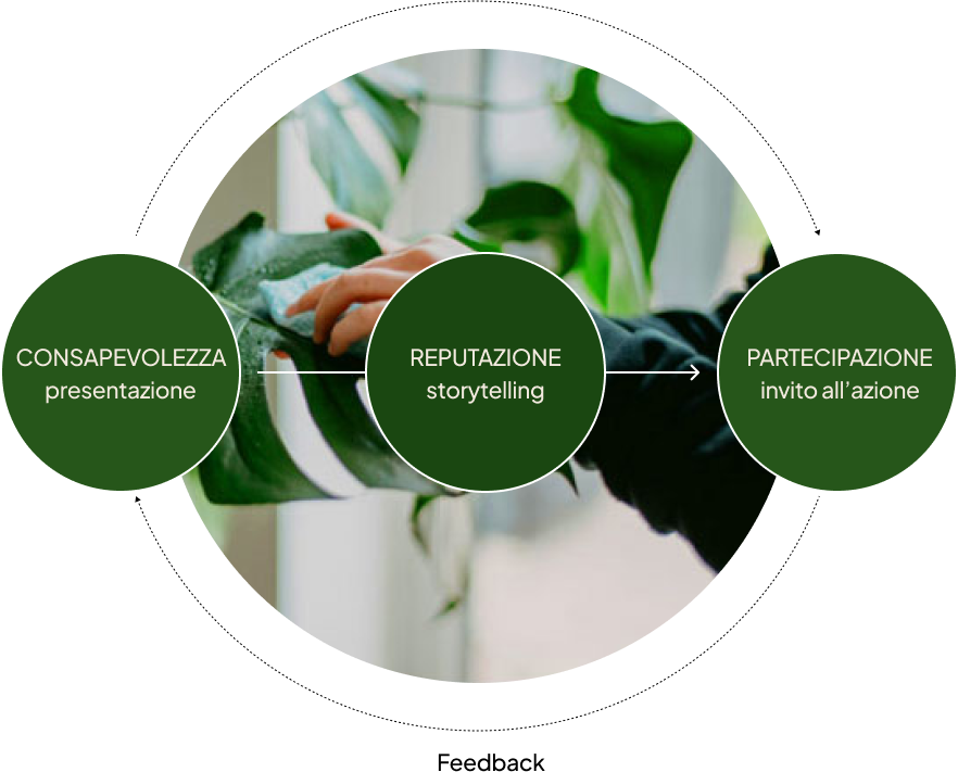 Il progetto si sviluppa secondo una logica Agile, quindi con una dinamica circolare che unisce la presentazione delle azioni intraprese, il loro inserimento all’interno di una cornice narrativa e l’invito alla partecipazione rivolto agli stakeholder: