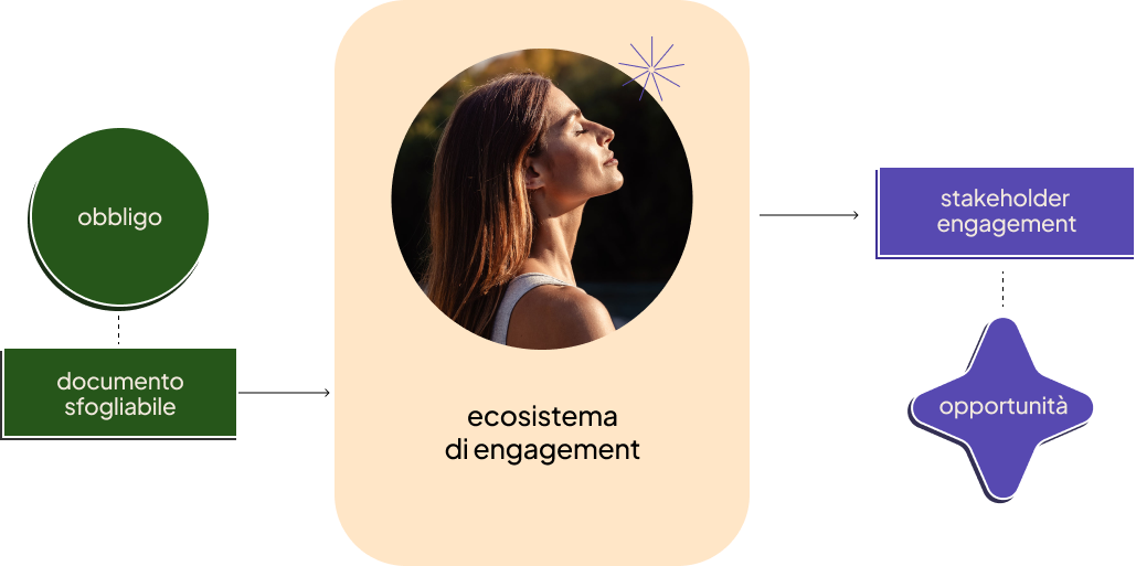 Il report, da semplice documento, può di fatto trasformarsi in un progetto di coinvolgimento degli stakeholder, con azioni e strumenti sempre più strutturati nel tempo.