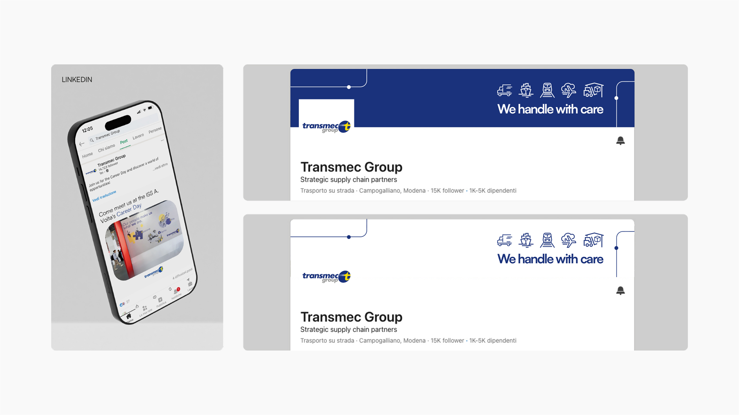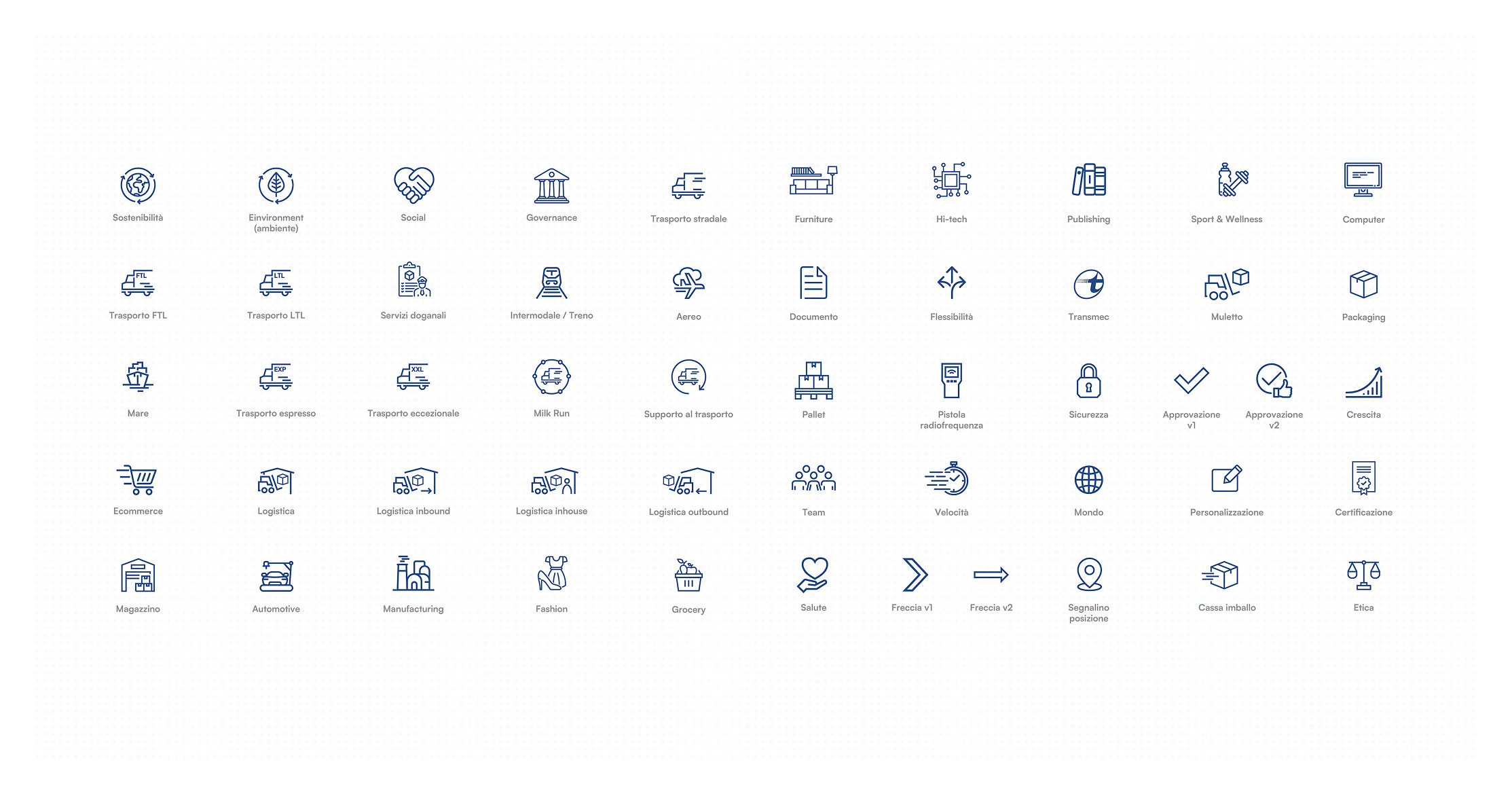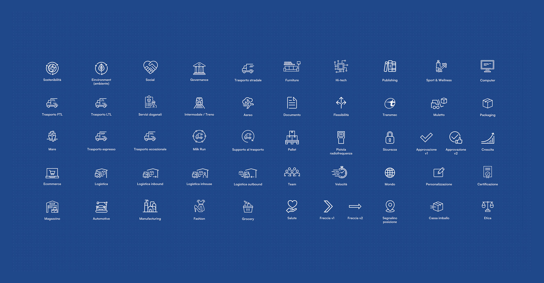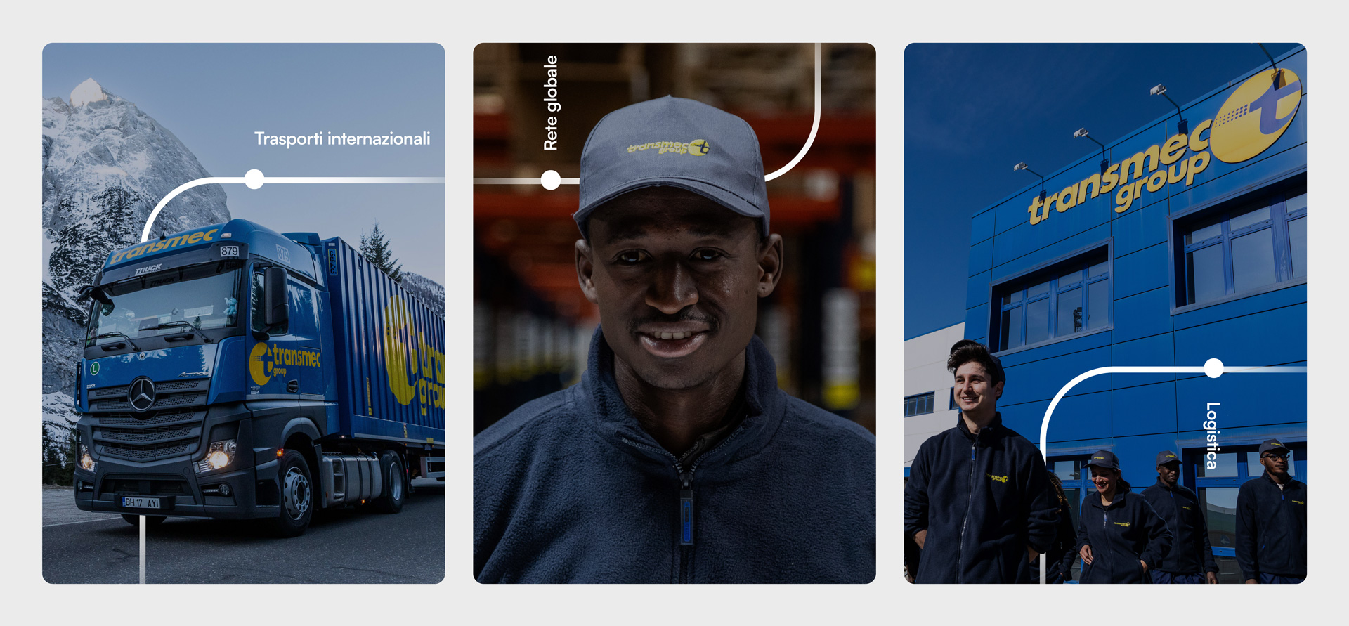 Un sistema visivo dinamico che racconta le connessioni, le collaborazioni e le sinergie che coesistono all’interno del Gruppo Transmec, trasformando l’idea di movimento in un tratto distintivo e riconoscibile della nuova Brand Identity.